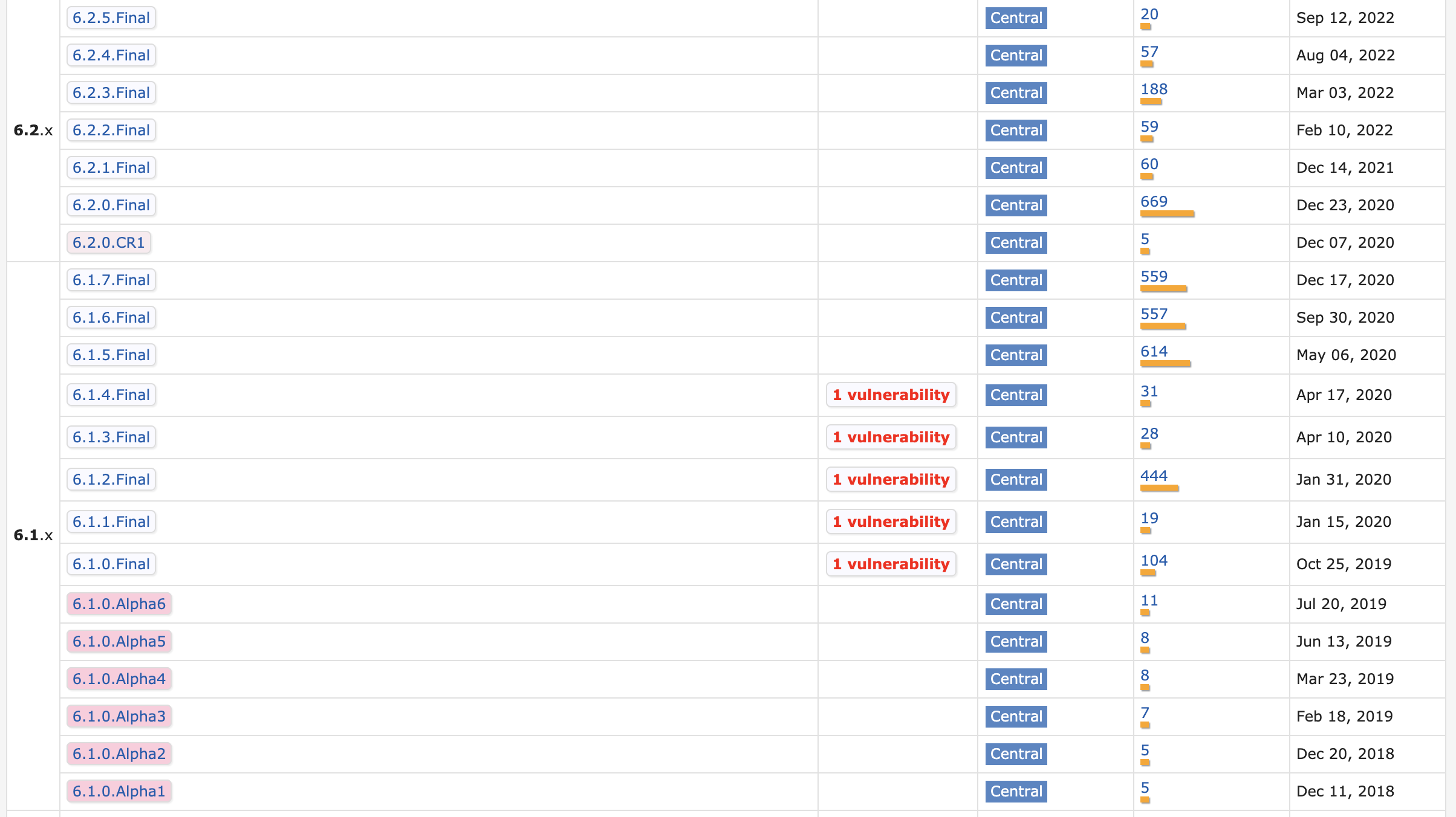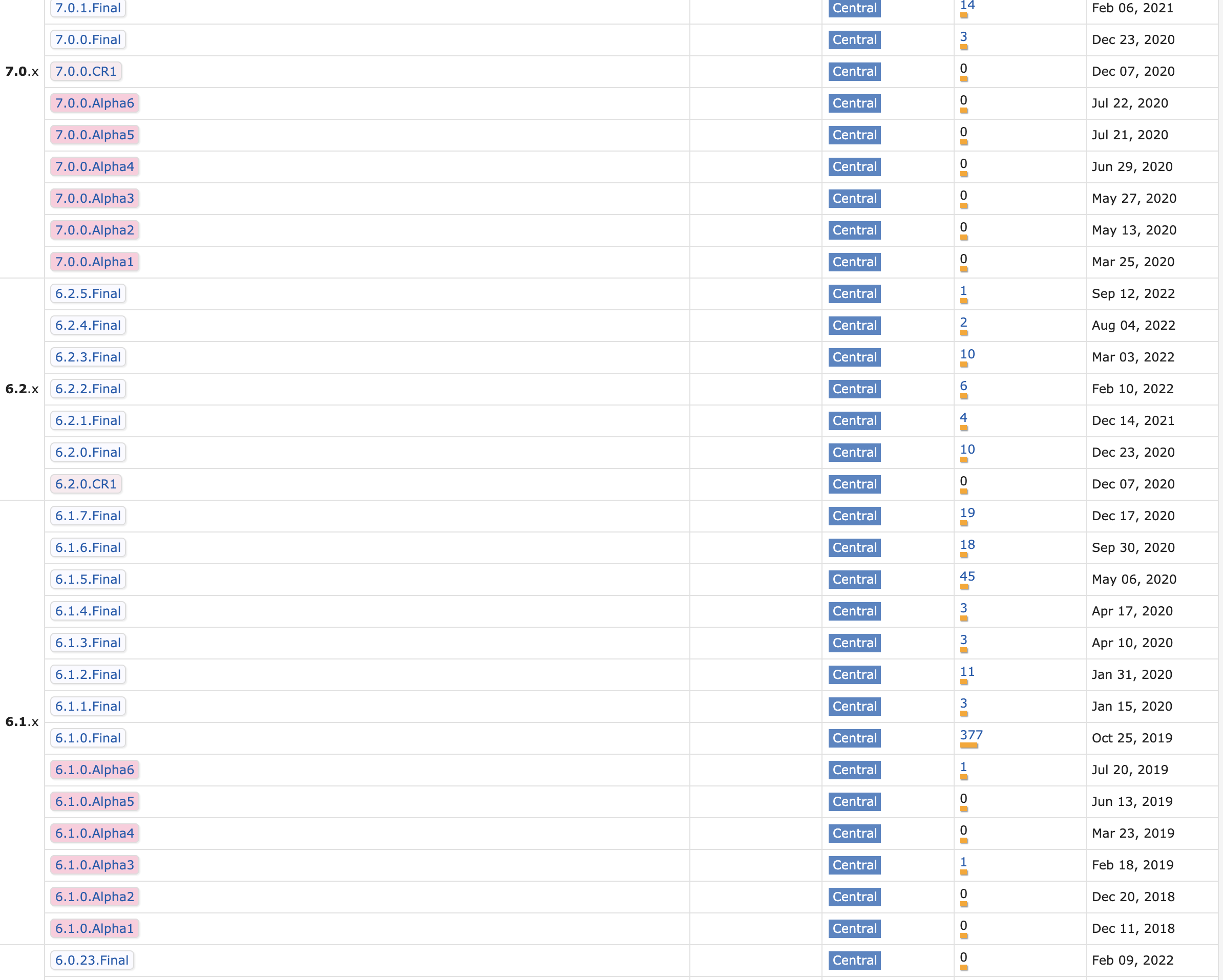 注:7.0.0及以上版本存在较大变更,虽然不存在漏洞,但很多方法都变了,需要重新写hibernate