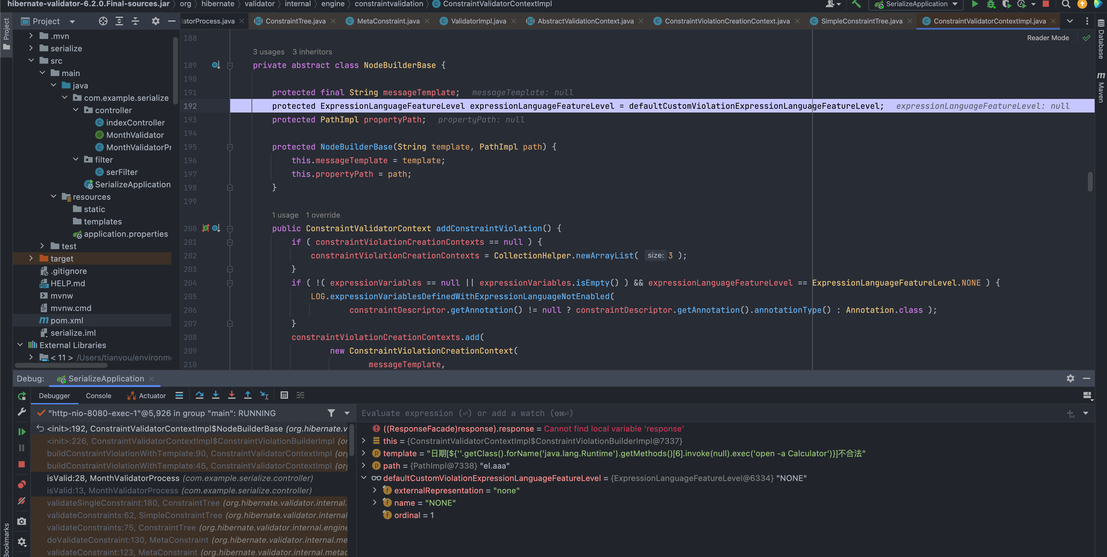 hibernate validate EL表达式注入漏洞