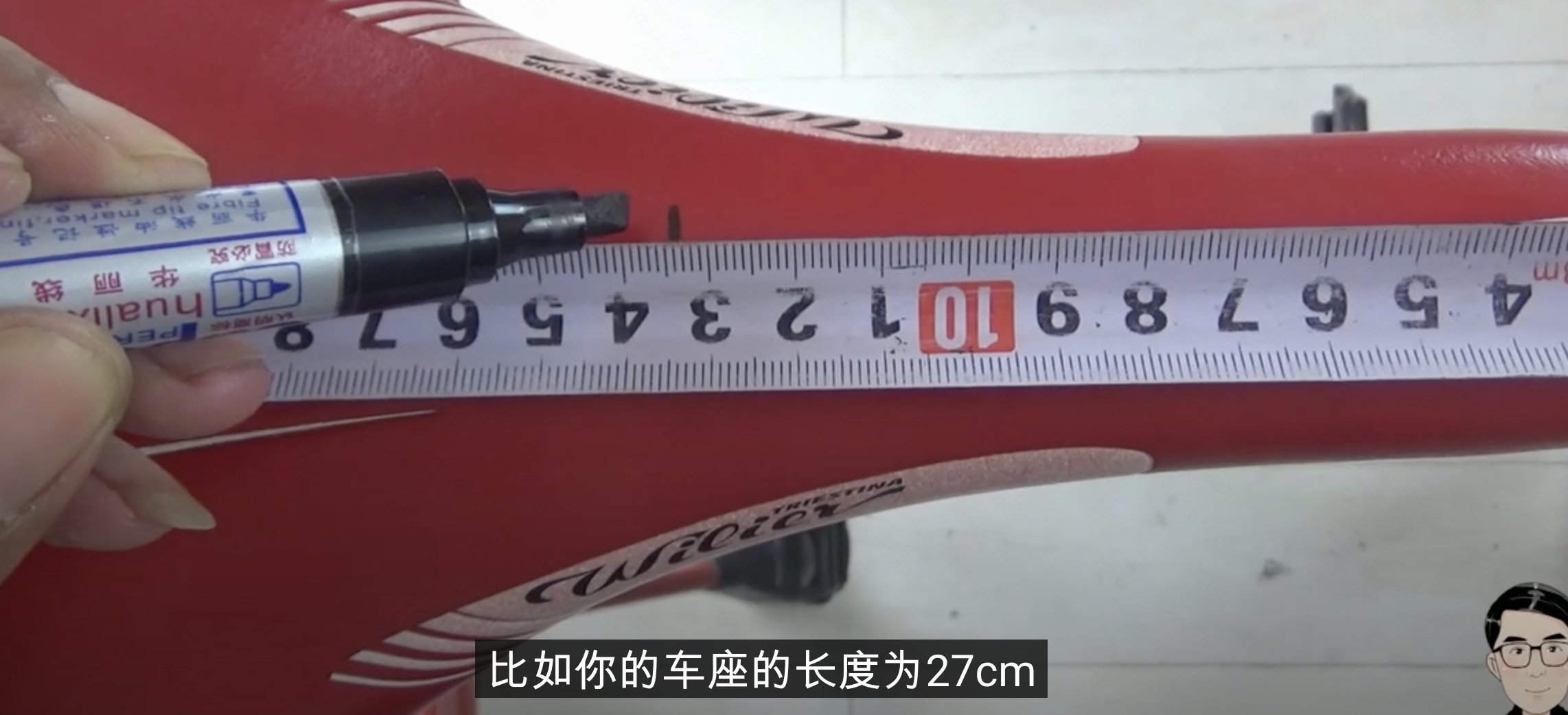 车座太高会左右摆动,车座太低就容易够到脚踏。要测出合适的位置