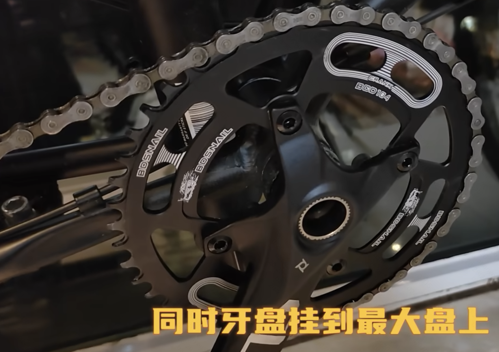 变到小盘大飞,顺时针拧L螺丝调整到第二个飞轮,再逆时针调整L螺丝挂到第一个飞轮,没有异响为止